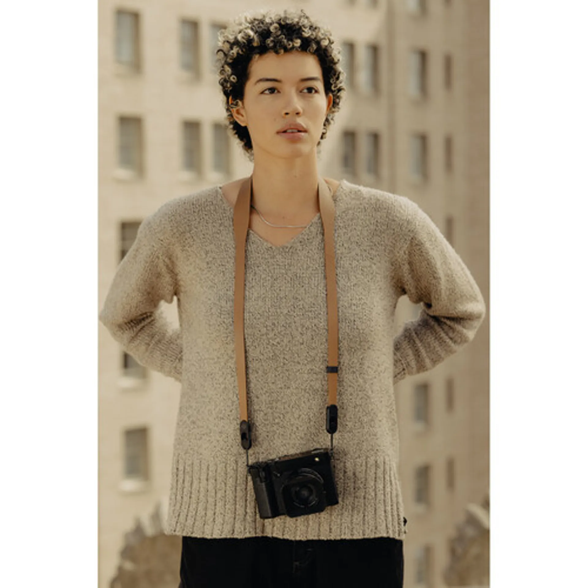 The Peak Design Form Leather Camera Strap Standard combines a modern, minimalist design with practical carrying comfort for everyday shooting.