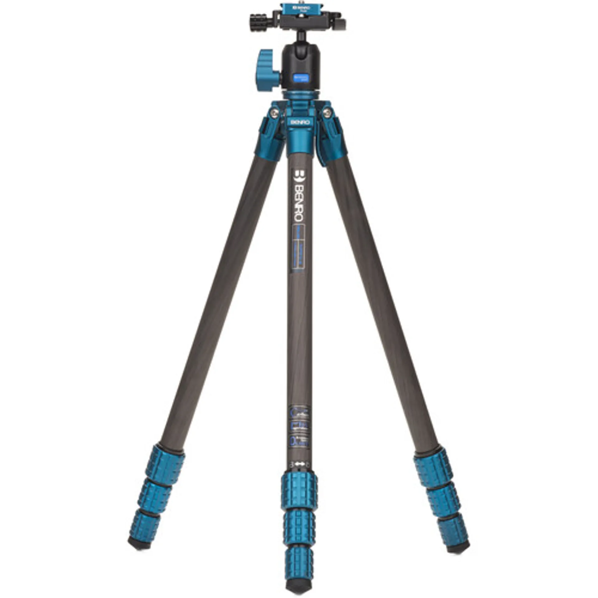 • Built-in bubble levels are included on the ballhead and tripod legs